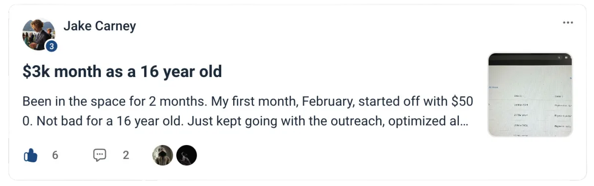 Instead of getting the newest video games just to find them boring in a week, you can join our community, start your business and shock your friends and family by becoming the kid who's leveling up in real life.